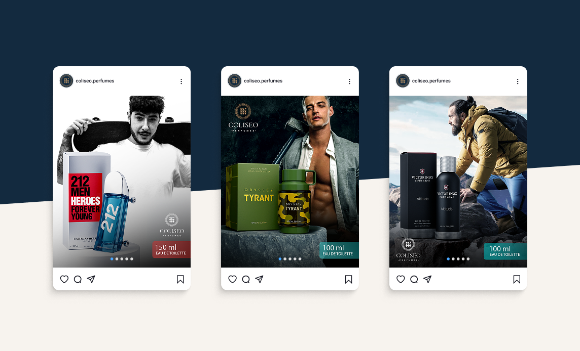 Coliseo se especializa en fragancias masculinas de nicho y diseñador: Antonio Banderas, Armaf, entre otros. La marca quiere posicionarse con lo clásico y elegante, conectar con un nicho que busque siempre la calidad y los mas altos estándares.